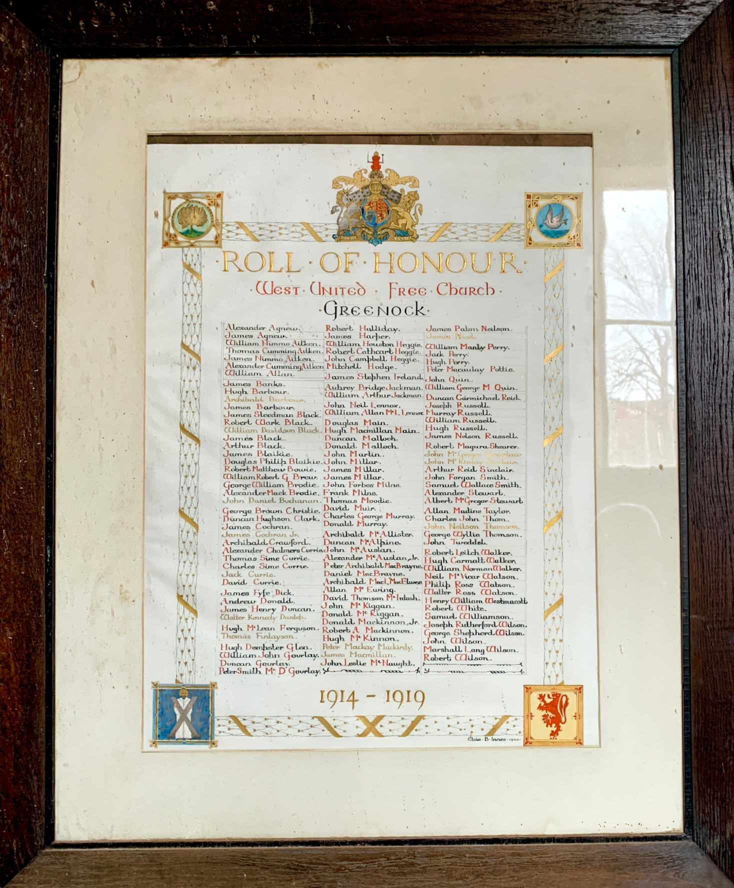 Scotland’s churches were once believed to be a safe repository for thousands of precious items of historical or cultural importance and for memorials to local individuals and those that had sadly fallen in the service of their country. Unfortunately, with hundreds of churches across the country in the process of being closed and sold, the future of many of these artefacts is uncertain. In his latest blog for us, Dr Peter Christie, one of the founding members of the Inverclyde Church Recorders, reflects upon the war memorials he and his colleagues have documented in the churches they have recorded on the west coast of the country.
