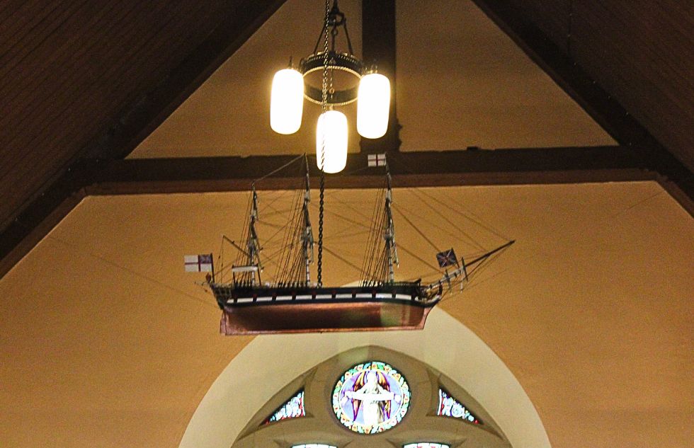 The sailors’ gallery had a ship suspended above it which you can see in the photo below.