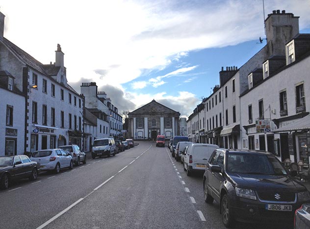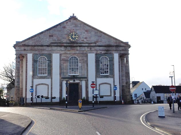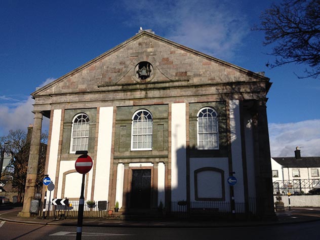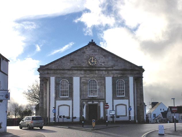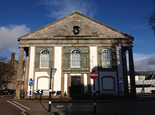 Centrepiece of the planned town, this classical church was designed by Robert Mylne in 1792 to house two congregations, English and Gaelic, each had its own entrance under its own portico. The tower with spire rose from the solid wall which separated the two identical halves, but the spire was demolished in 1941 as it was thought to be unsafe. The Gaelic portion was converted to a church hall 1957. A chamber organ by David Hamilton of Edinburgh was installed in 1840s. Furnishings, including the screen and pulpit, were installed in 1898. Glenaray & Inveraray Parish Church is a Destination Hub on the St Columba Pilgrim Journey.