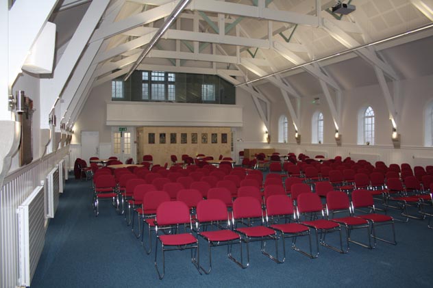 Rosyth Parish Church stands at the heart of Rosyth, built as a Garden City when the Royal Naval Dockyard was developed in the early 1900s. The church was designed in 1930 by Hugh Mottram a pupil of Raymond Unwin the developer of the Garden City concept. The building is reminiscent of Dutch Architecture, with its square tower and steeple finished with a teak belfry, and copper roof crowned by a cross. The nave, 80ft by 40 ft wide is spanned by an open timber roof with a wide arch at the west end which leads to the apse. The later Church Hall extension of 1954 was also designed by Mottram as were some of the houses in the Garden City. The 1968 extension is by D White & Associates. The church has recently undergone a large renovation.