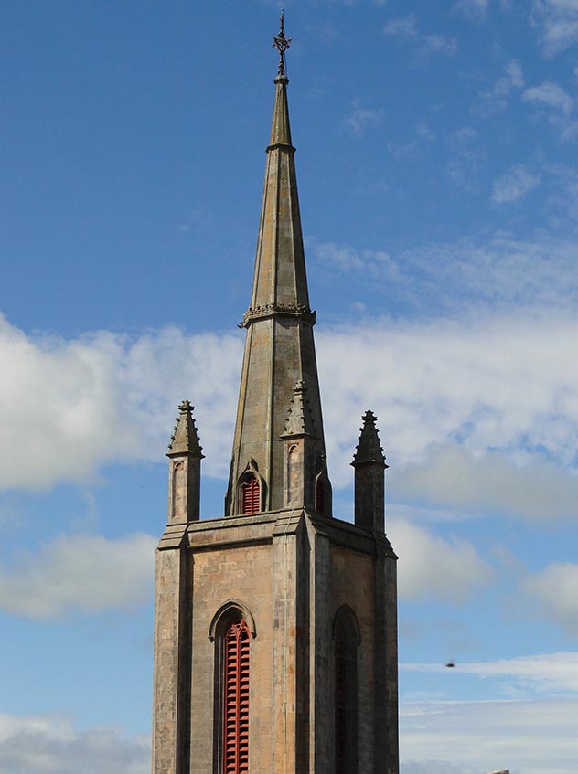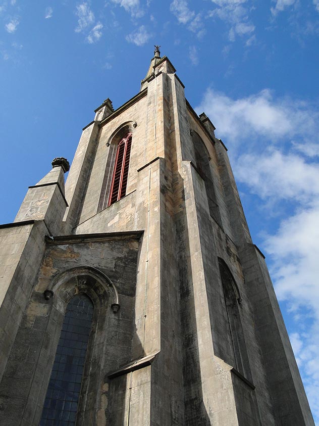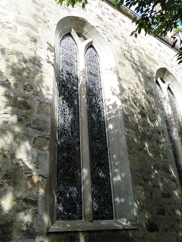 Opened as the Free Church in 1845. Designed by Archibald Simpson in severe Gothic with a square tower surmounted with a slender spire. The interior, in contrast, is softened by the warmth of the hammer-beam roof and colourful stained glass windows, a triple lancet First World War Memorial by Oscar Paterson and, adjacent to the pulpit, the Second World War Memorial by Gordon Webster.