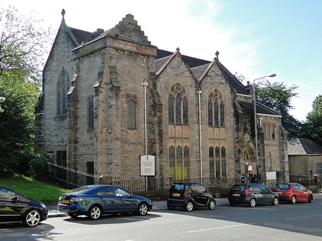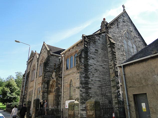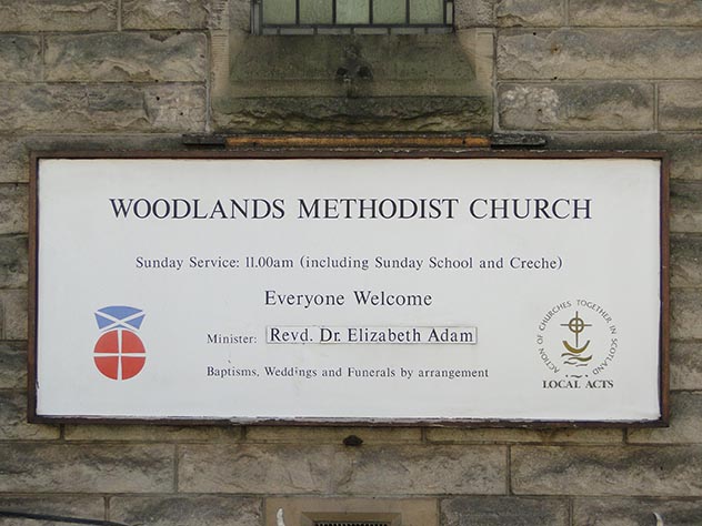 Built for Swedenborgians by David Barclay 1909 and in use by the Methodists since 1977. A wide stair leads to the church. Organ 1876 from Cathedral Street Swedenborgian Church, originally built by Forster & Andrews and augmented with pipes from the Willis organ at St John’s, Sauchiehall Street. Windows by Guthrie & Wells and George Benson, and war memorial window from St John’s.